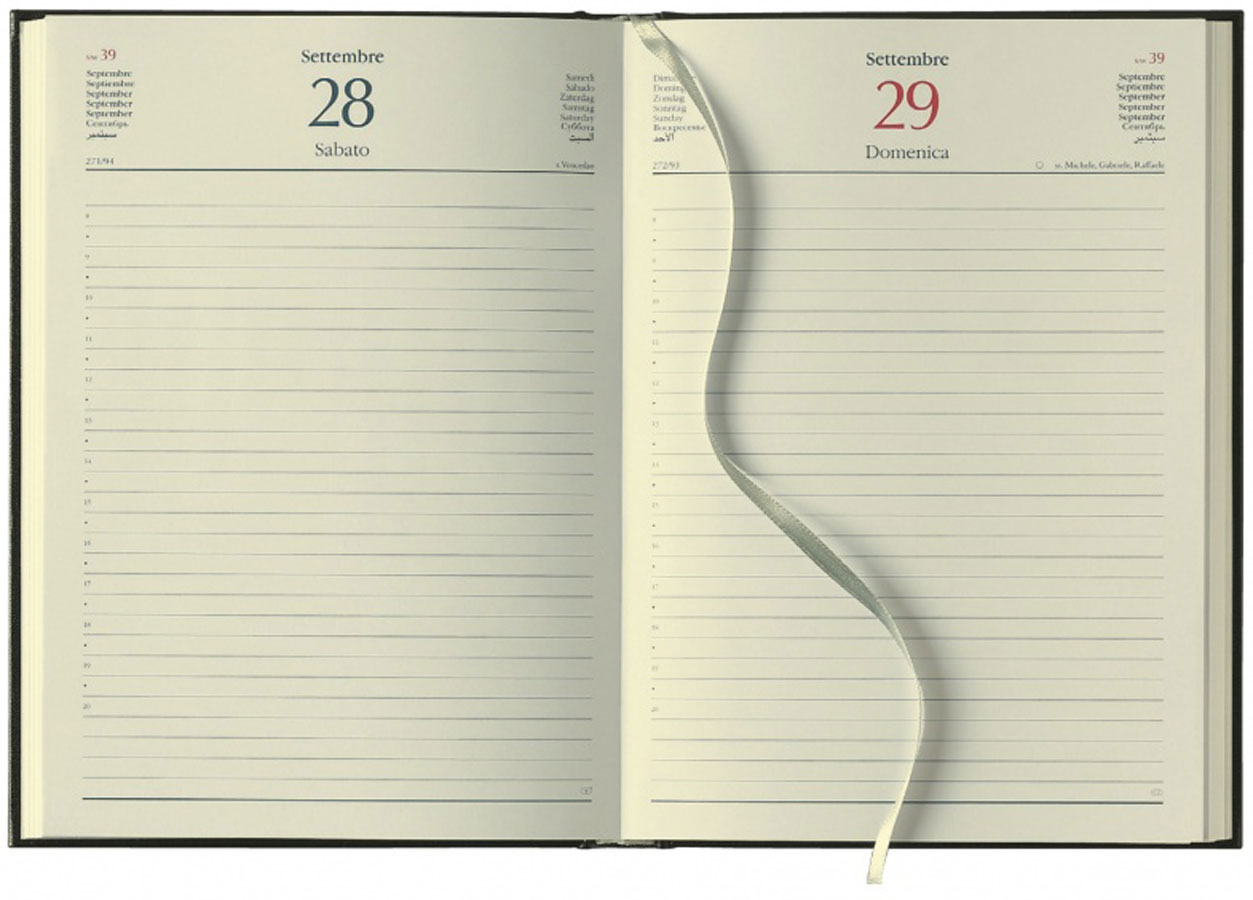 Giornaliero a righe in carta avorio con stampa a 2 colori, sabato e domenica separati, rubrica, cartine geografiche |